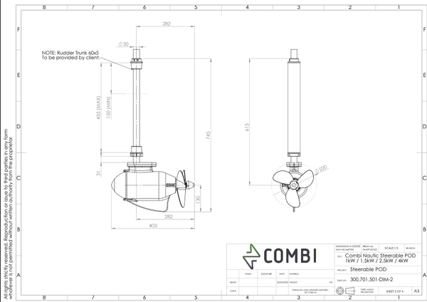 De Combi Nautic Steerable POD is een stuurbare POD welke kan worden toegepast in een roerkoning of hennegatskoker. Deze toepassing verhoogd de manouvreerbaarheid van uw vaartuig en wordt vaak toegepast in sloepen. De stuurbare POD kan 360 graden draaien om zijn as (exclusief aansturing zoals een stuurcilinder waarmee je de normale stuuruitslag kan halen).