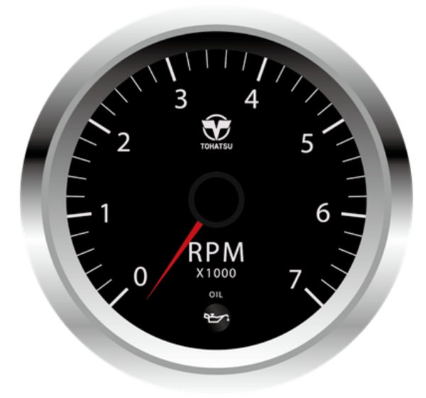 De toerenteller met een toerental van 7.000 tpm (diameter van 10 centimeter) heeft een chromen ring en is verlicht voor een goede weergave in het donker. Beschikt over een koepelvormige lens om schittering in direct zonlicht te minimaliseren en een mist- en krasbestendige coating.
