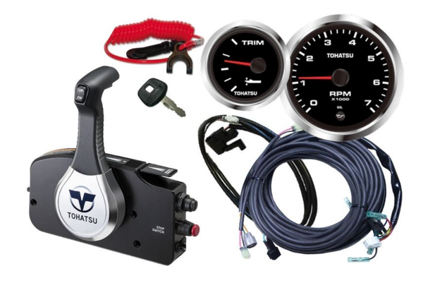 - of op verzoek: afstandsbediening met powertrim: zijmontage schakelkast met aanbouwset, toerenteller, trimmeter, kabelboom met contactslot en dodemansknop, communicatiekabel kit (artikelnummer 3ZG-84555-0).